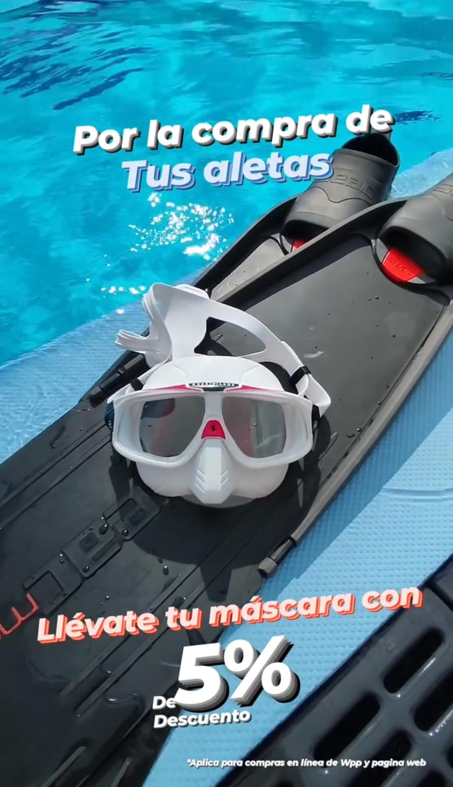 Por tu compra de aletas, llévate tu máscara con un 5% de descuento final, aplicado en la pantalla de pagos.
