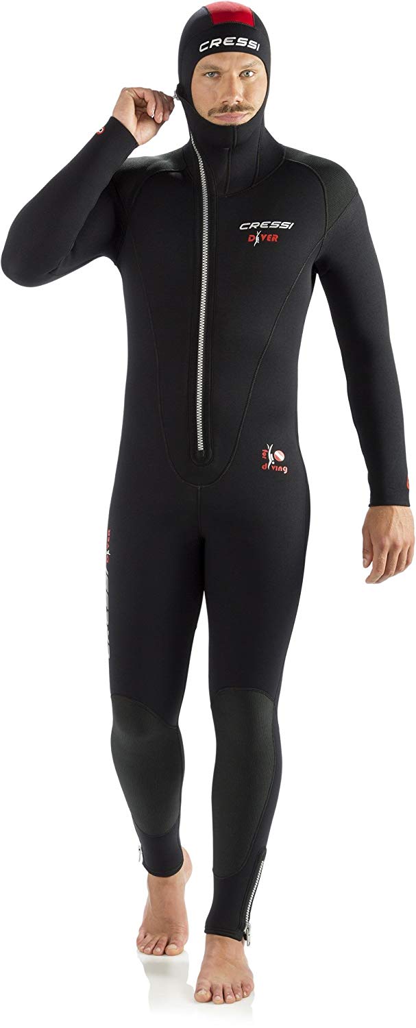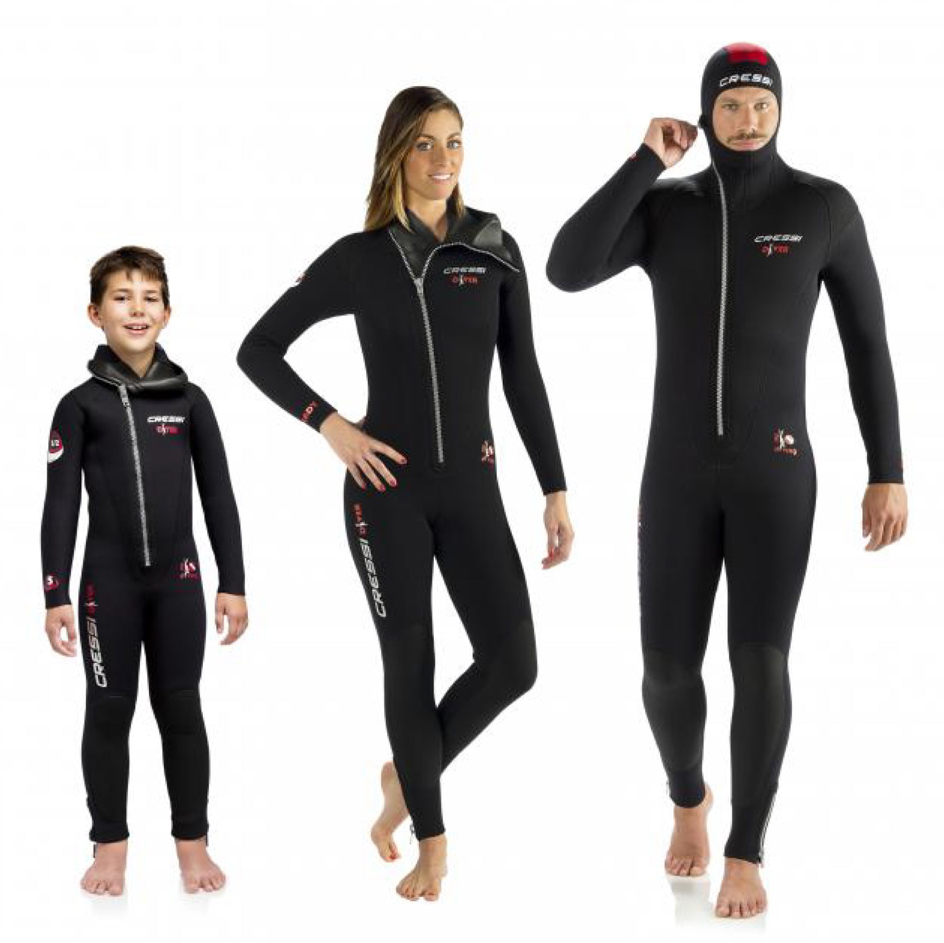 Probably The most popular one-piece suit in diving centers , due to its high popularity resistance, watertightness and ease of placement . Its wide spectrum pattern makes it a suit Ideal for diving centre equipment . Diver is a 5 mm one-piece suit with built-in hood and front zip.