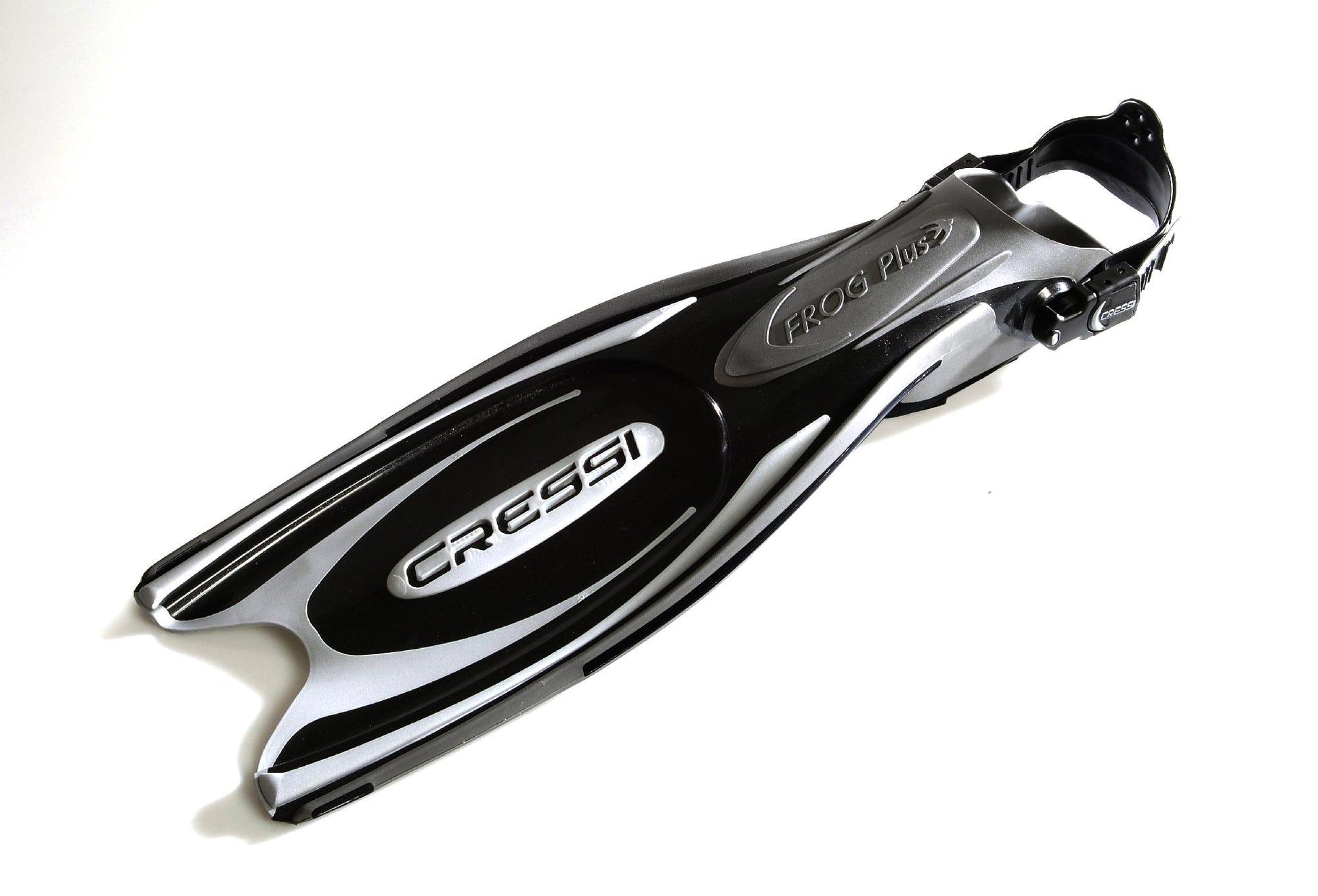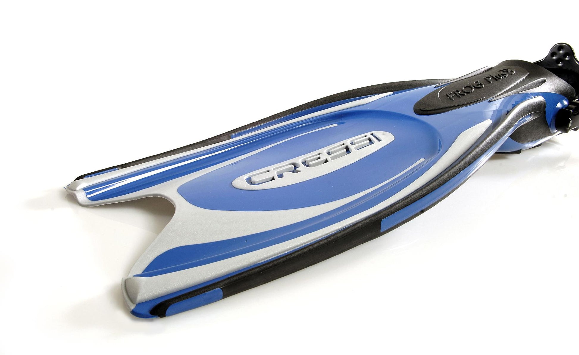 FROG PLUS está fabricada en una nueva variante de polipropileno de bajo módulo que, unido a una particular estructura, combina una gran flexibilidad, suavidad y resistencia a un uso exigente (inclusivo como aleta de alquiler y escuela en un centro de buceo), durabilidad y una estética inéditas en aletas proyectadas con esta filosofía. Frog Plus es la auténtica 4x4 de las aletas Cressi.