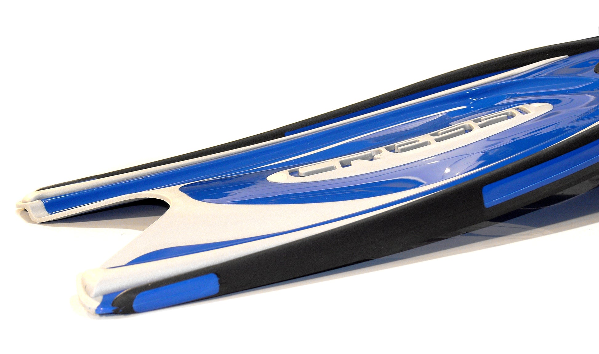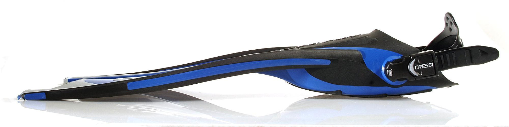 - Cuerpo principal de polipropileno: un material heredado de la apnea que tiene como principal característica la rapidísima transmisión de la energía aplicada. Se aplica a la pala y zona interna del sándwich de la suela. Es muy nervioso y reactivo y facilita un aleteo muy ágil y un avance vertiginoso. Tiene una relación esfuerzo/rendimiento netamente superior al caucho (natural o termoplástico), el poliuretano, la E.V.A. y solamente superado por el carbono. Asímismo, tiene una gran resistencia a la rotura hasta el punto de que Cressi lo garantiza de por vida para uso deportivo.