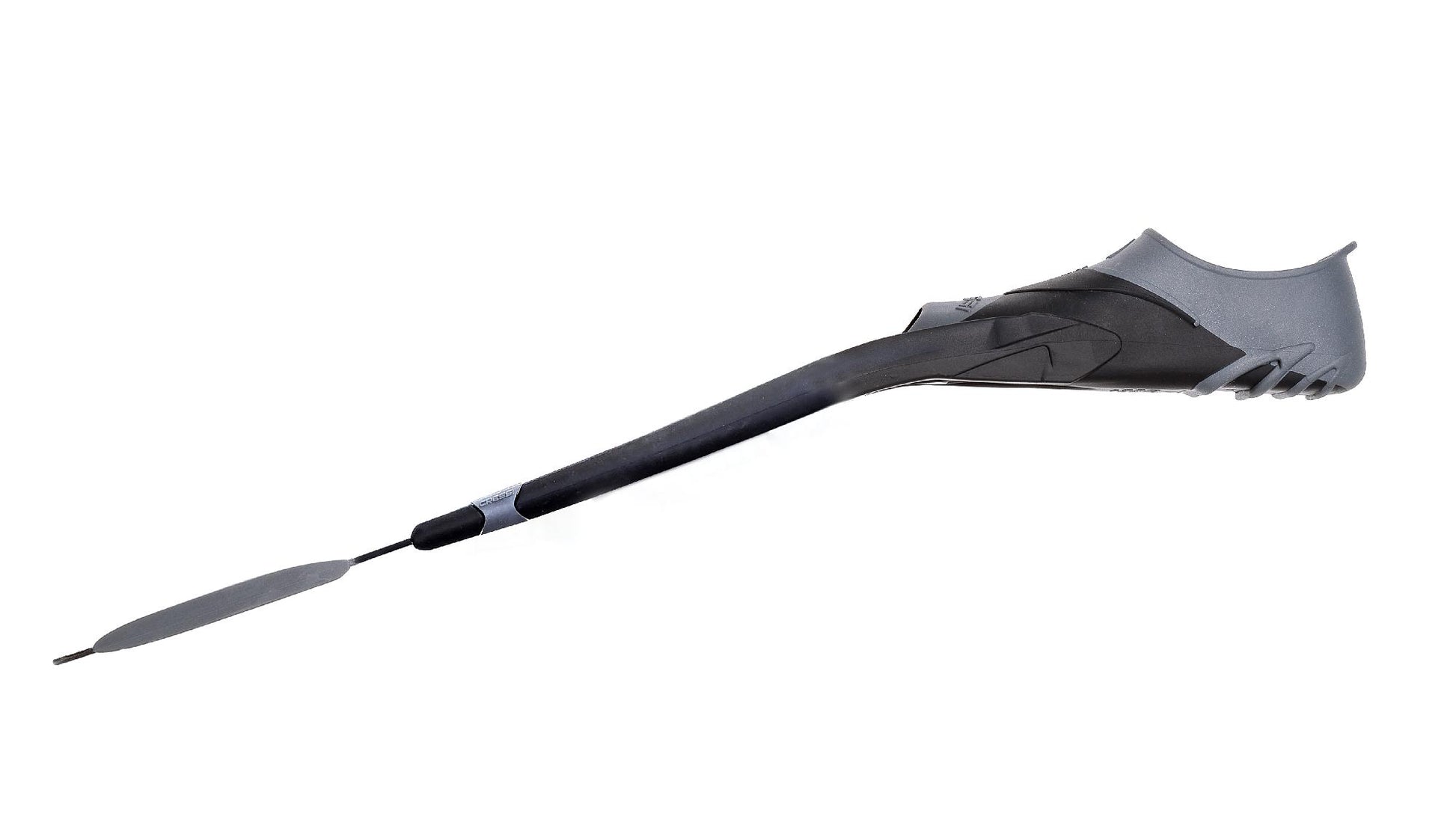 Nueva versión con pala en polipropileno de alto módulo de alta reactividad y nuevo diseño con espesor variable longitudinal y transversalmente y una nueva distribución de los refuerzos, que hace que el arqueo sea muy progresivo anulando la tendencia al derrapaje, ya que la primera mitad del conjunto es de mayor rigidez y la mitad final más flexible.