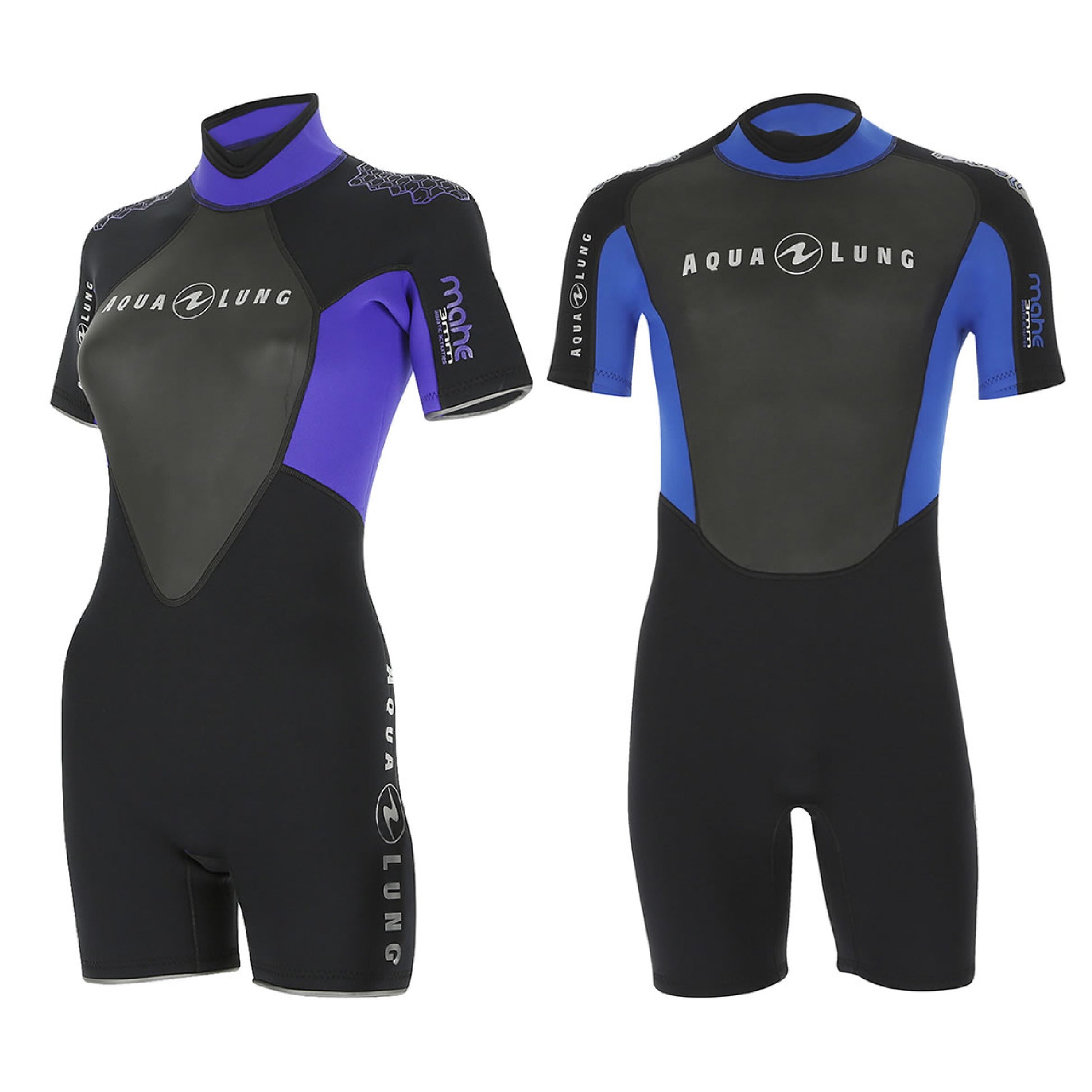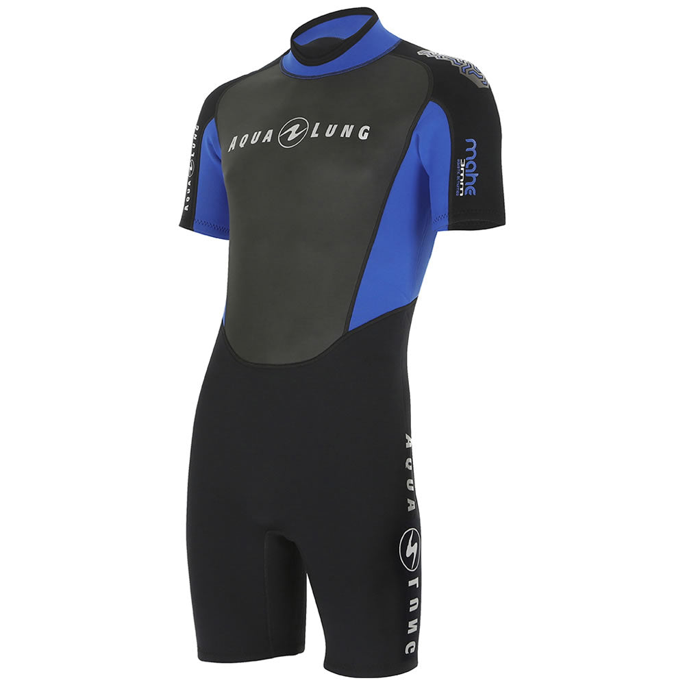The Mahe is a shorty suit for warm water diving that is flexible enough for use in other water activities. Flatlock stitching and a V-collar give the Mahe additional comfort .