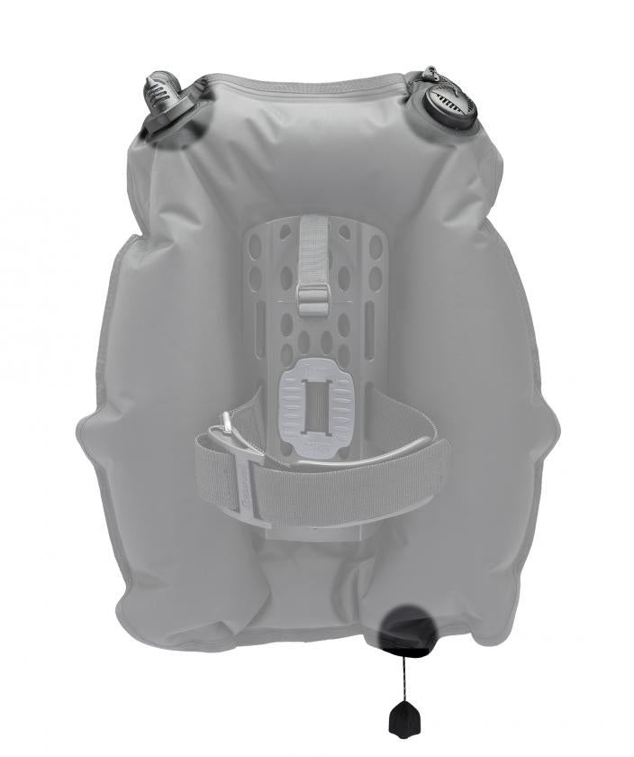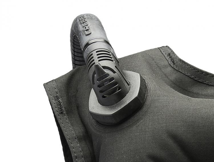 Direct System Inflator: Double metal filter at the air inlet under the stem and cylindrical around the valve. Very robust and attractively designed body. Recalibrated inflation speed, 50% higher (traditional M-size vest in 4 seconds at 1 atm). Sand-proof design with minimized mouth inflator nozzle. Push button with wide clearances from its seat to prevent the blocking action of grains of sand. Drain push button sealed by silicone washer. Inflation push button integrated into profile to prevent unwanted inflation when pulling the trachea to drain. New, very resistant trachea with very progressive curvature. Integrated hose-guide clamp.