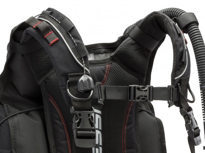 Harness completely covered with comfortable, neutral buoyancy padding made from a closed-cell material that prevents the accumulation of water or air, thus reducing the inherent buoyancy of the vest and facilitating quick drying.