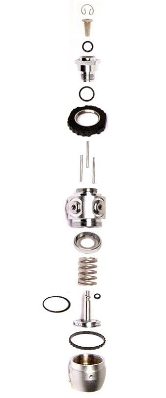 Conical filter with great filtering capacity, essential to prevent the entry of particles from the bottles. This point is especially important in school or rental regulators.