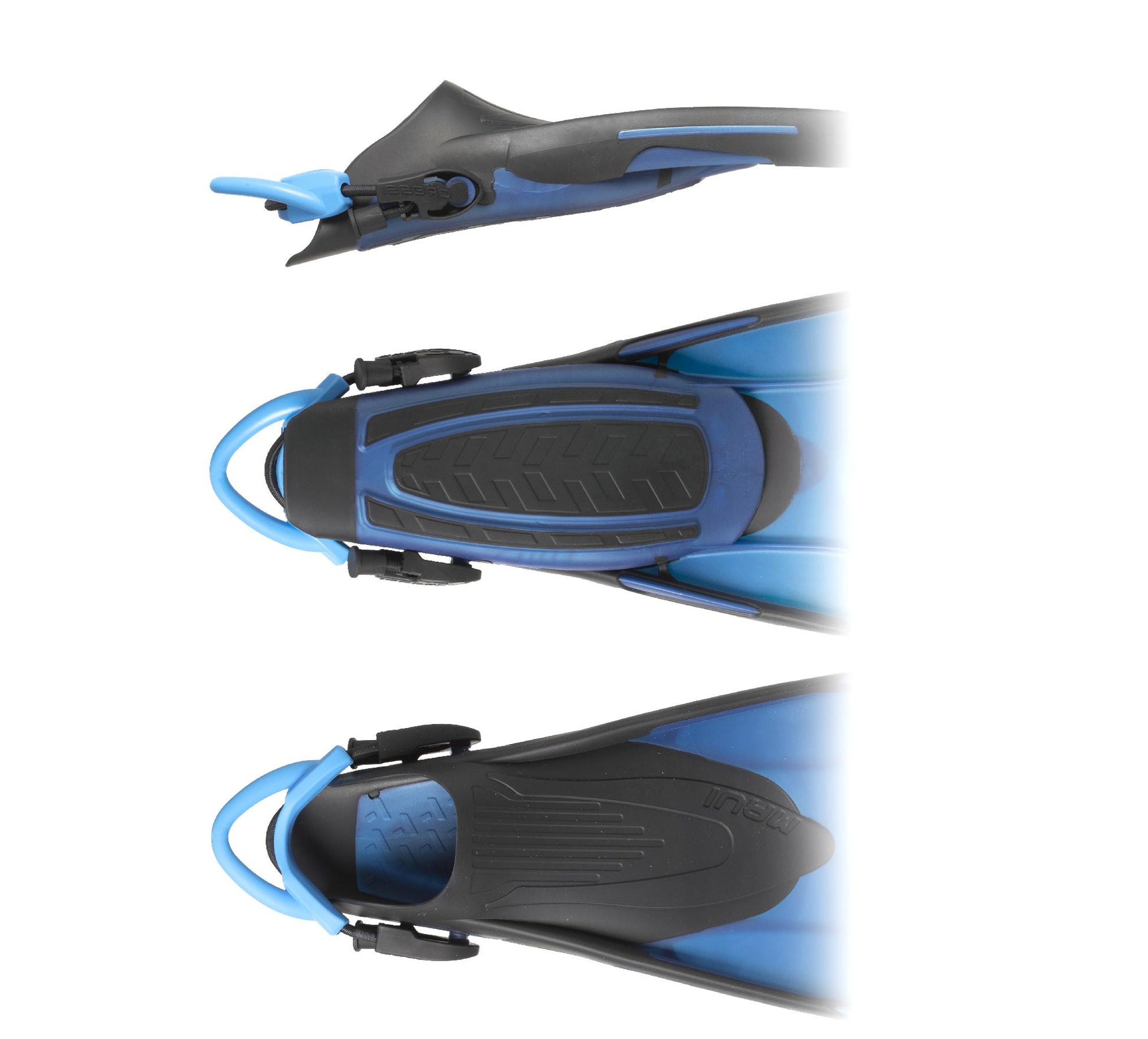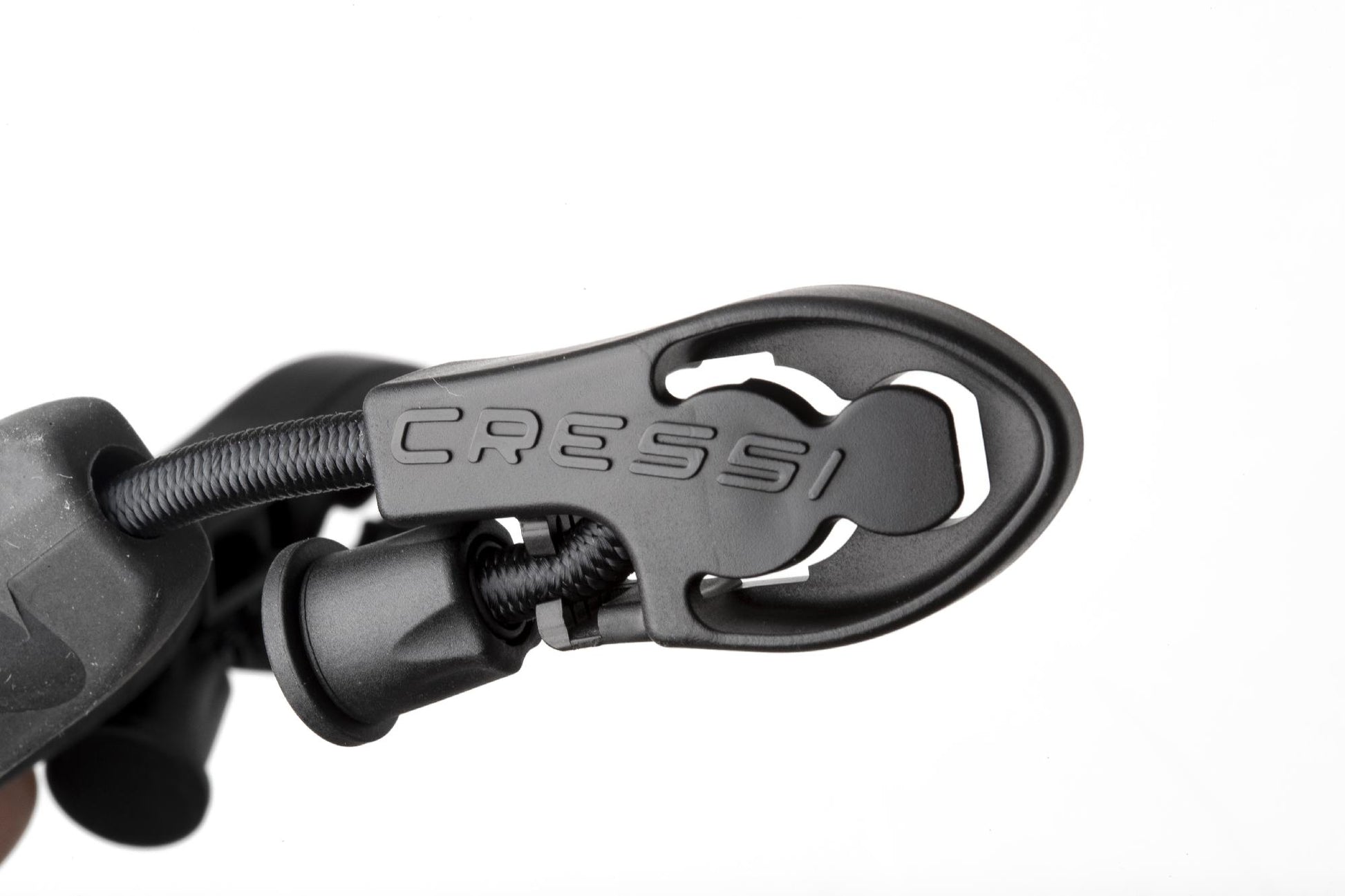 Aunque el propio EBS permite una gran adaptabilidad y hace que ponerse la aleta sea especialmente fácil, las hebillas prevén un doble sistema de ajuste adicional sencillo y práctico. Esta función permite al usuario obtener micro ajustes, según lleve escarpín o no, o simplemente aflojar o apretar para que el pie quede bien sujeto, pero sin ejercer una presión excesiva.
