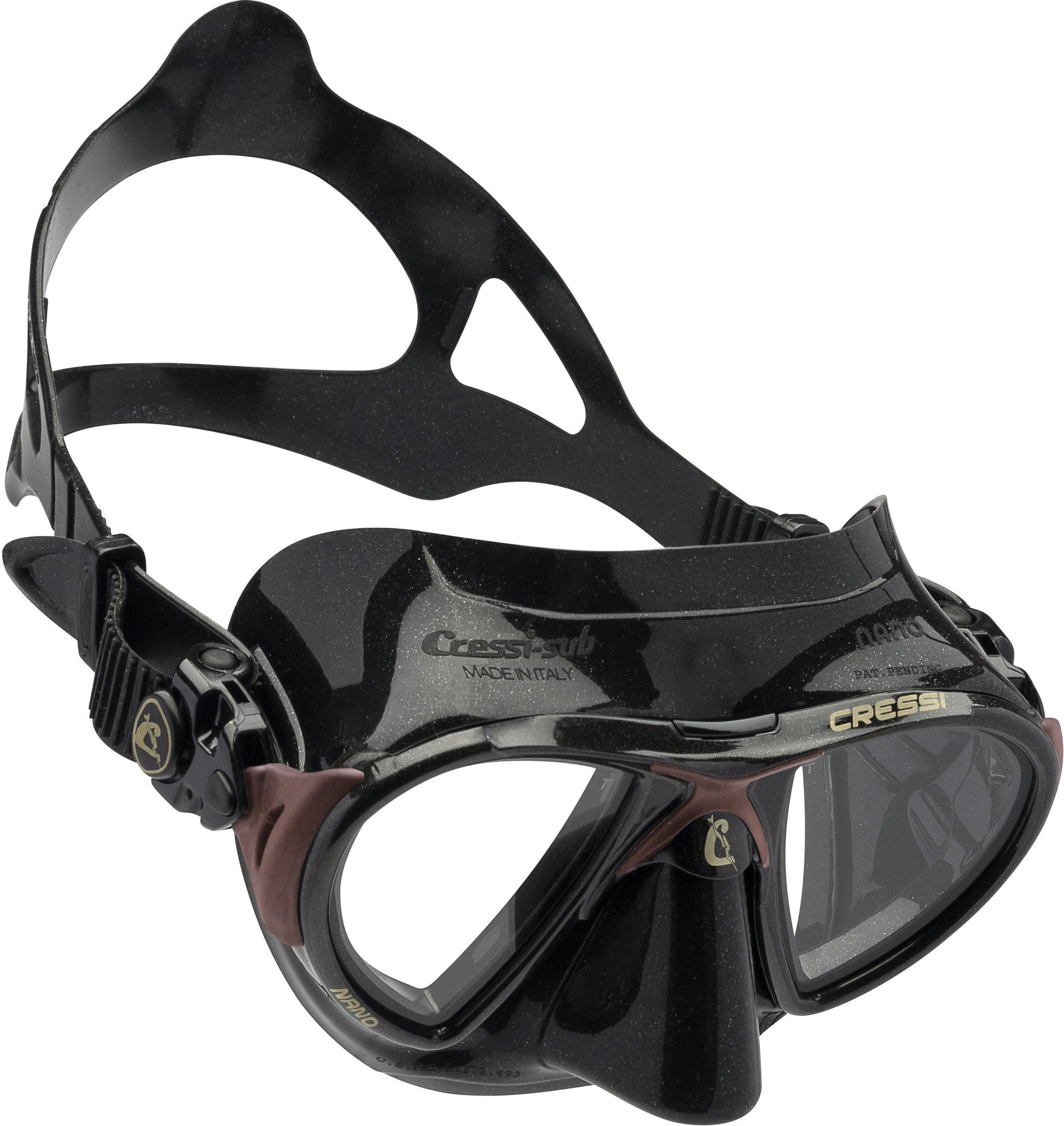 Recomendada especialmente para apnea, con un diseño extremadamente hidrodinamico y compacto, no requiere de compensación intencional, posee los lentes inclinados con posible visibilidad HD Mirrored lenses, los espesores de la montura se reducen a la mínima expresión y es muy ligera.