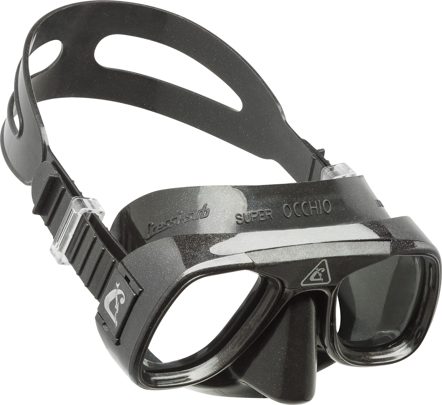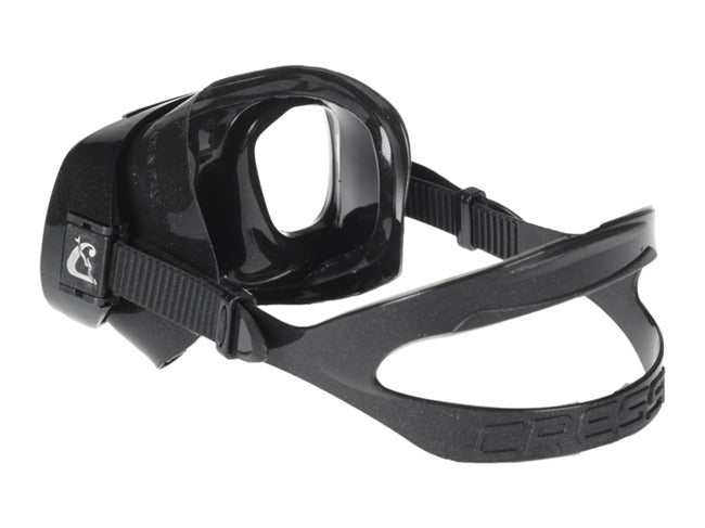 Bicristal especial para apnea y rugby subacuático, muy resistente, volumen muy reducido, perfil hidrodinamico, hebillas integradas en la montura y de silicona de gran espesor para una optima estabilidad en el rostro.